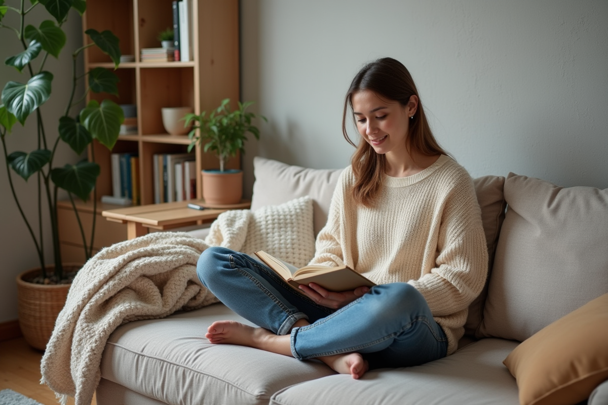 Façonner un petit espace à son image, c’est avant tout choisir ce qui compte vraiment. Les plantes vertes trouvent leur place sur une étagère, dans un angle ou suspendues : elles rafraîchissent l’air et structurent l’ensemble sans empiéter sur la circulation. Les textiles sont de précieux alliés : tapis moelleux sous les pieds, coussins colorés, plaids, tout concourt à créer une atmosphère chaleureuse et enveloppante.