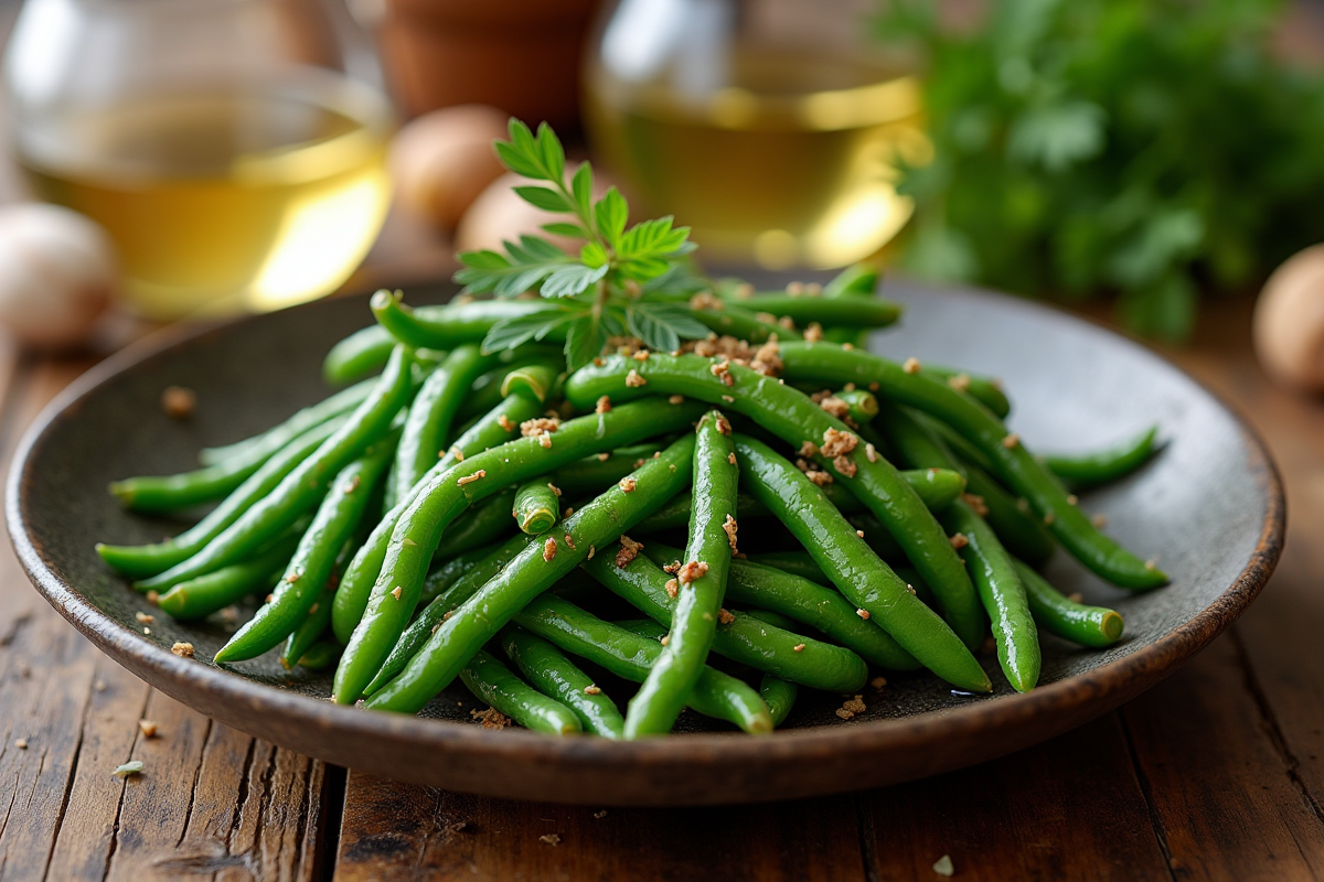 Pour une cuisson à la poêle, préparez vos haricots plats en les taillant en morceaux uniformes. Chauffez une poêle avec un filet d’huile d’olive et ajoutez les haricots. Faites-les sauter pendant 5 à 7 minutes, en remuant régulièrement. Cette technique permet de conserver une texture croquante tout en développant des arômes grillés. Pour ajouter une touche de saveur, vous pouvez incorporer :